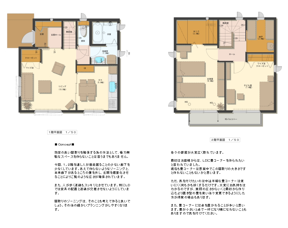 今回全体の規模は小さいながらもゆったりとした間取りになっています。その方法について幾つかご紹介をしたいと思います。