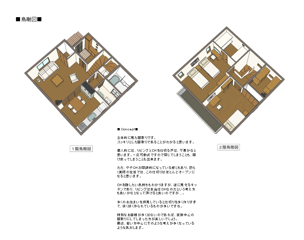1階の浴室の向きが左右逆ではと思われるでしょうが、これは、家相のために逆にしてあります。決して間違ったわけではありません(笑)。 |